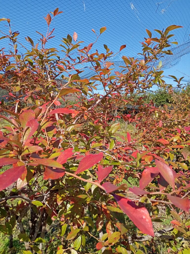 秋が深まりました 2025 12/16 農園の様子 2021年11月3日2025年12月16日 ブルーベリーの郷です。 寒暖差が激しいですね。日中は汗をかき、畑から引き上げる頃はヒンヤリします。 ブルーベリーの葉っぱも紅葉が始まりました。 気持ちの良い季節ですね。 農園の様子