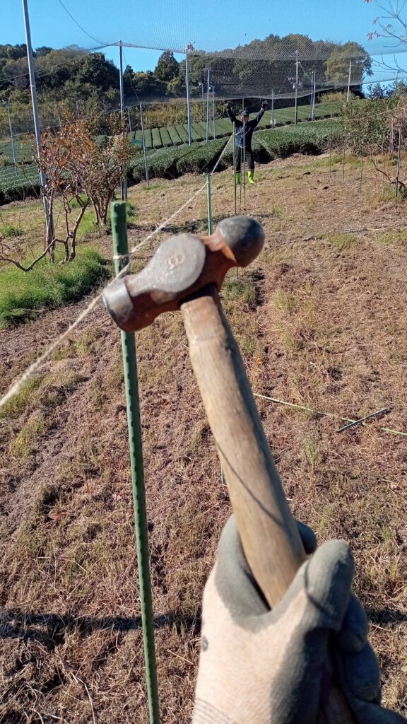 ブルーベリーの植込み 2025 12/16 ブルーベリーのこと 2021年11月28日2025年12月16日 ブルーベリーの郷です。ブルーベリーの樹齢は、約30年と言われています。適宜、若返りさせないといけません。この時期から若木の植え込みを始めます。間隔を決めるために、緑棒に麻紐を渡します。決定した場所は、げんのうで深く埋め込みます。今年は、たーっくさん植え込むつもりです! ブルーベリーのこと