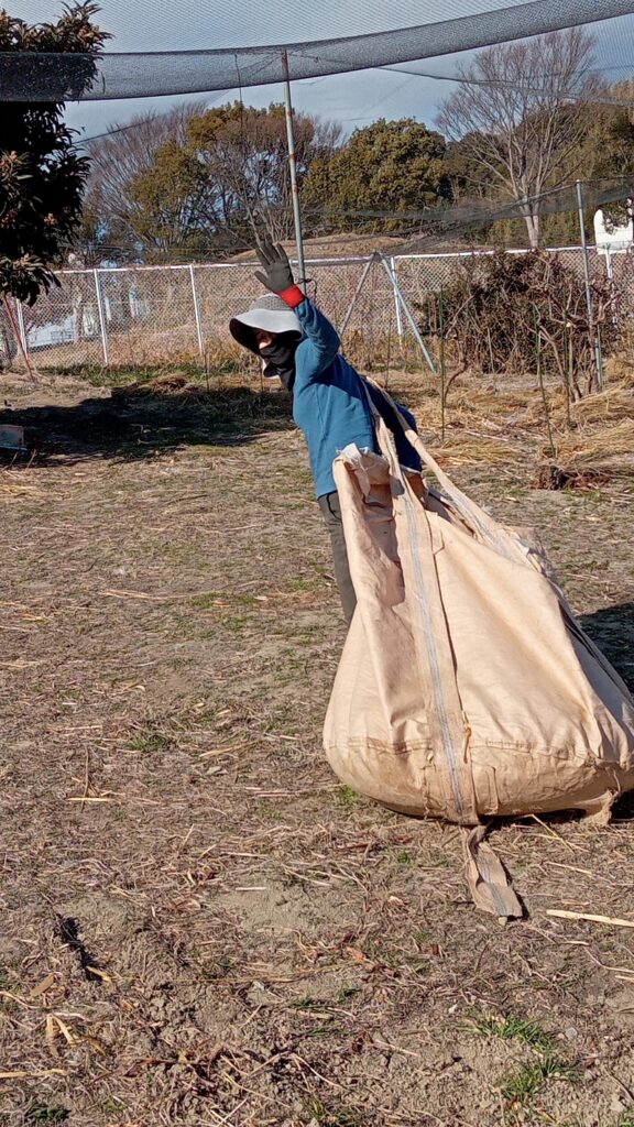 それを、新しく植えたブルーベリーの根元にマルチとして置きましょう!