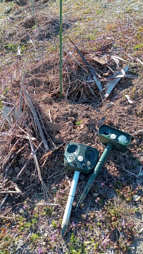 獣避けマシーンを2種類、他の畑から持って来て設置しました。