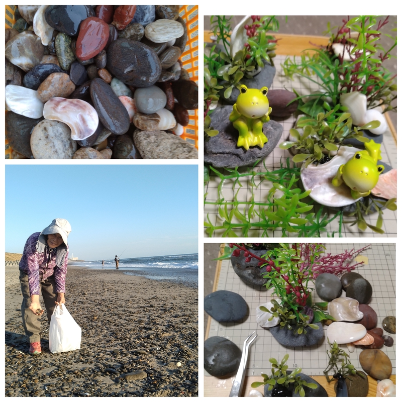 かわいいめだかのため 水槽を可愛くしたくて、 海に行って 石を拾い